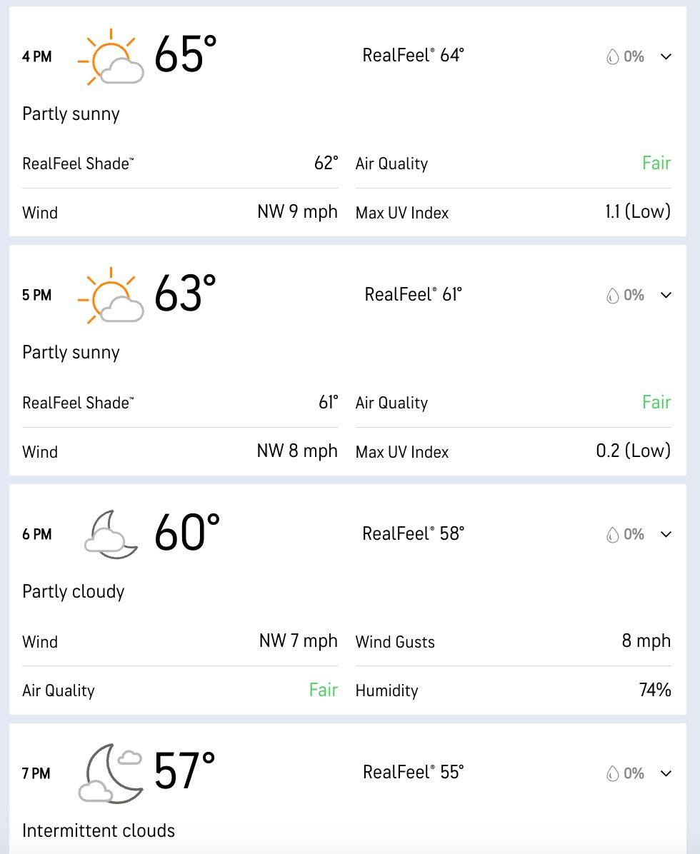 Perfect. No chance of rain during the game.