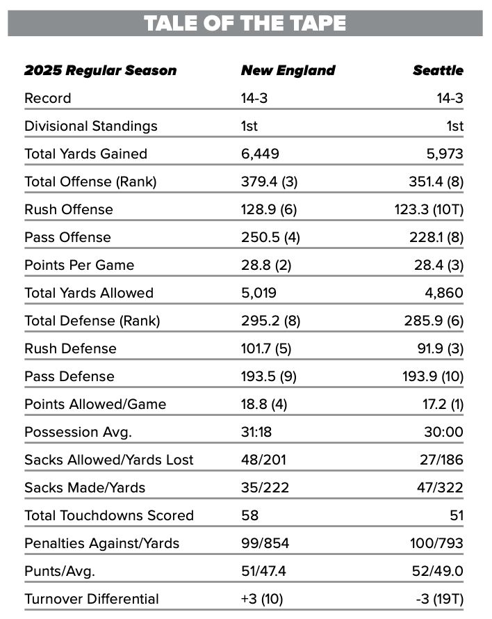 Super Bowl LX - Patriots (17-3) vs. Seahawks (16-3), 6:30 p.m.