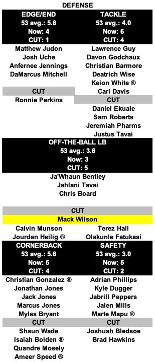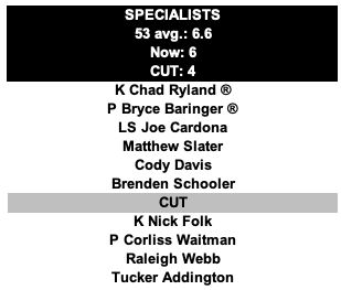 And the questions about linebacker and how safety factors in ... that's probably the biggest discussion point about the roster when it comes nailing down the final numbers (and not really considering yet those veteran practice squad players who serve as a shadow roster up to 56 players).