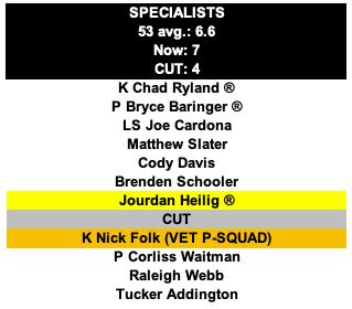 59. OG Kody Russey: Has looked really good at guard but you have to gain special teams spots somewhere.