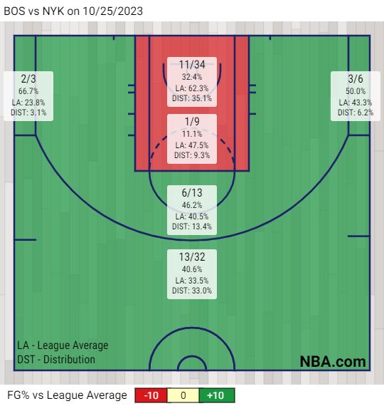 The defense (generally speaking): Some of this can be chalked up to shooting variance. The Knicks shot 44% from 3, Boston shot just under 31%. I think aside from Immanuel Quickley getting hot from deep in the third quarter to make it a game, Boston did a good job protecting the rim.