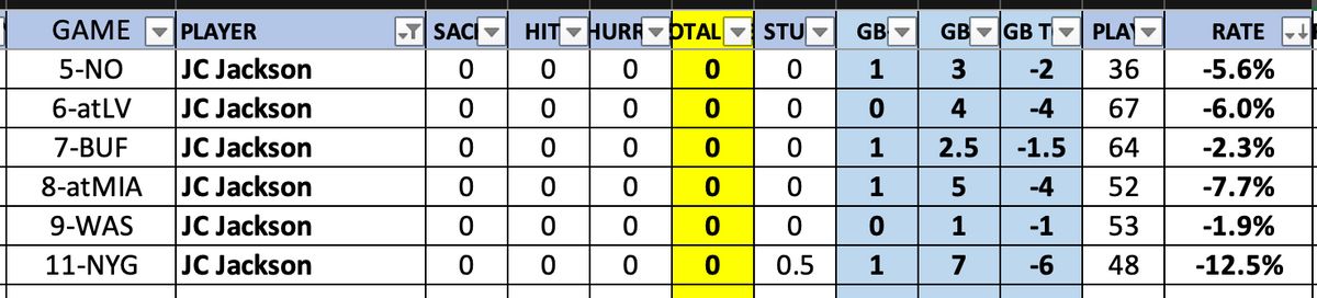 Put it this way. I had the Patriots for a total of 15 minus plays against the Giants. Jackson had seven by himself. No one else had more than two.