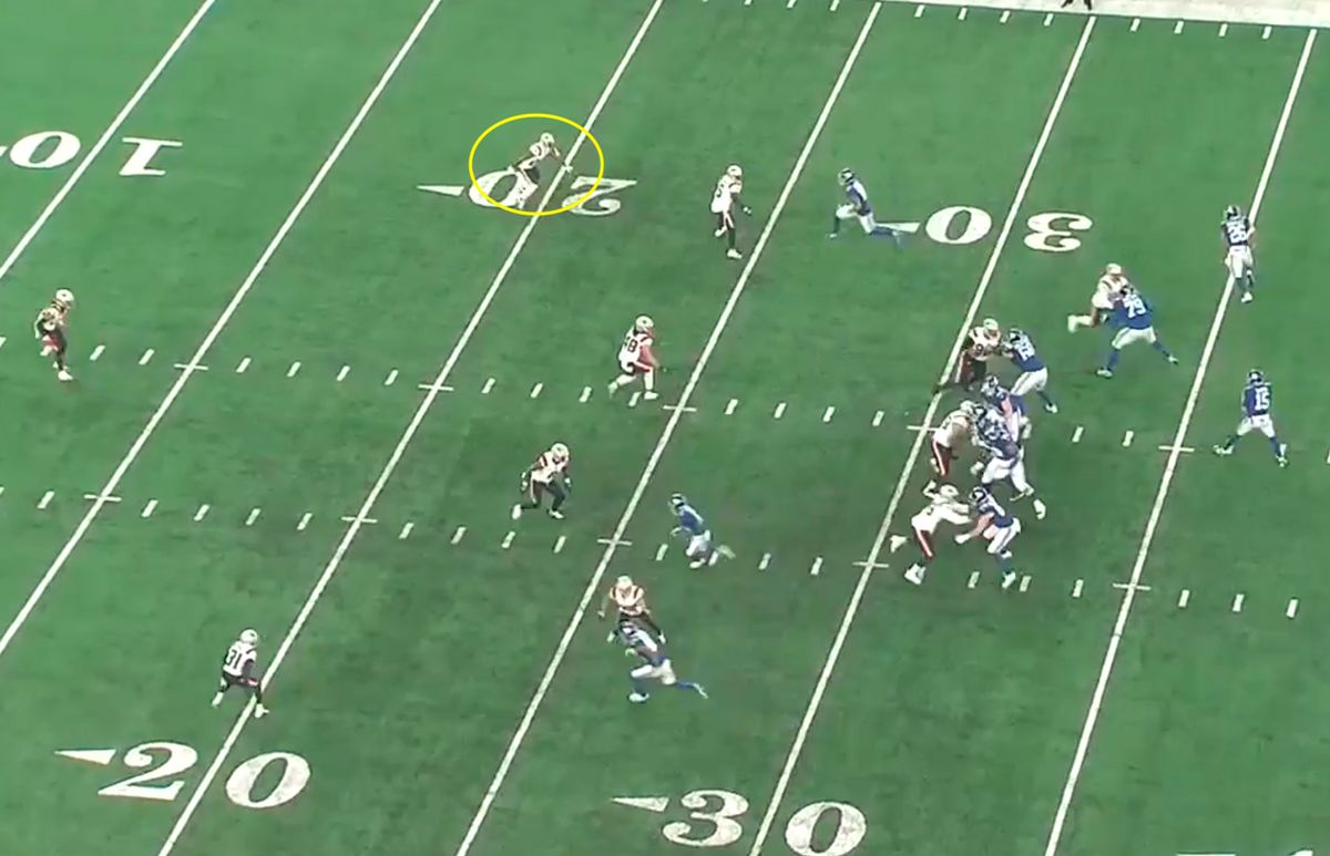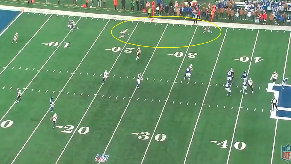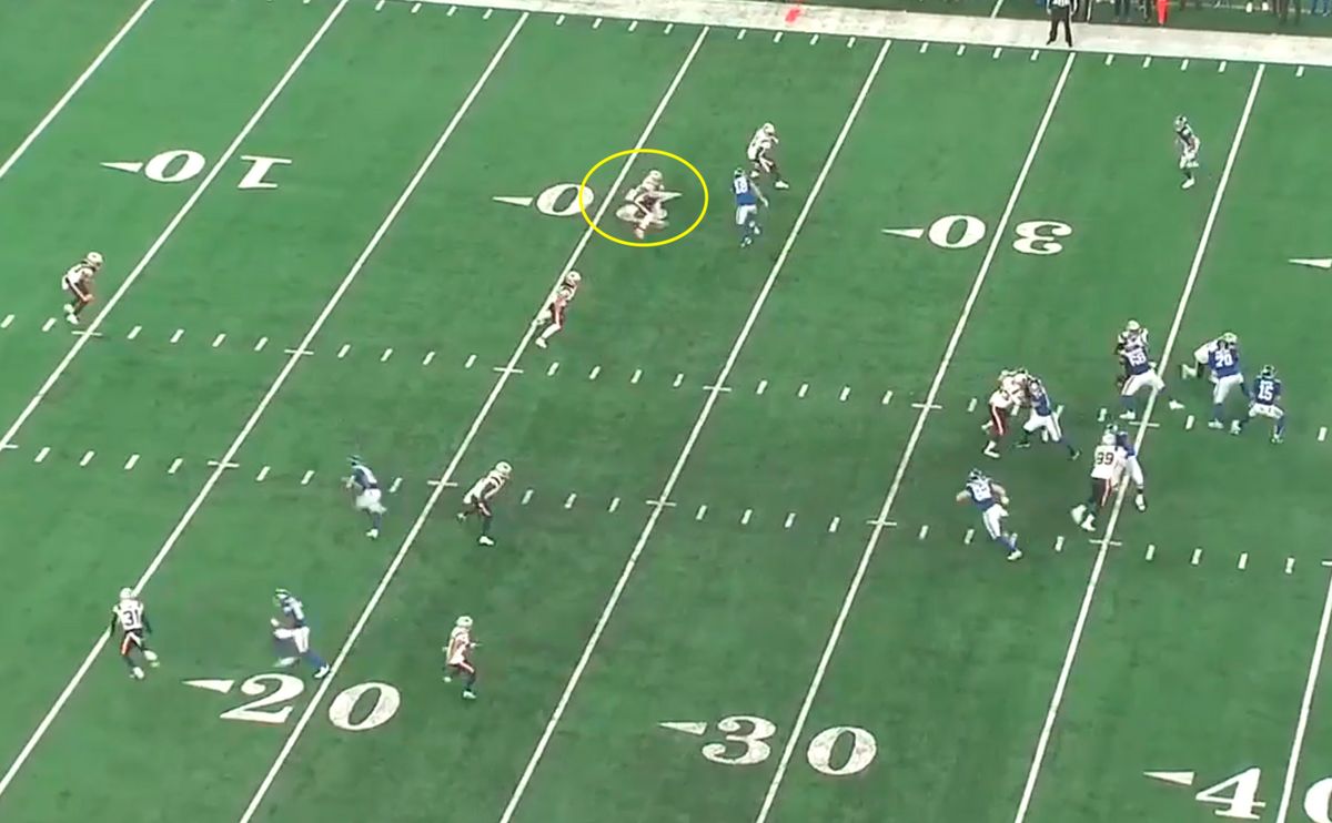 The problem is now no one has the flat. By the time Jackson switches himself, Barkley is catching the ball in the flat.