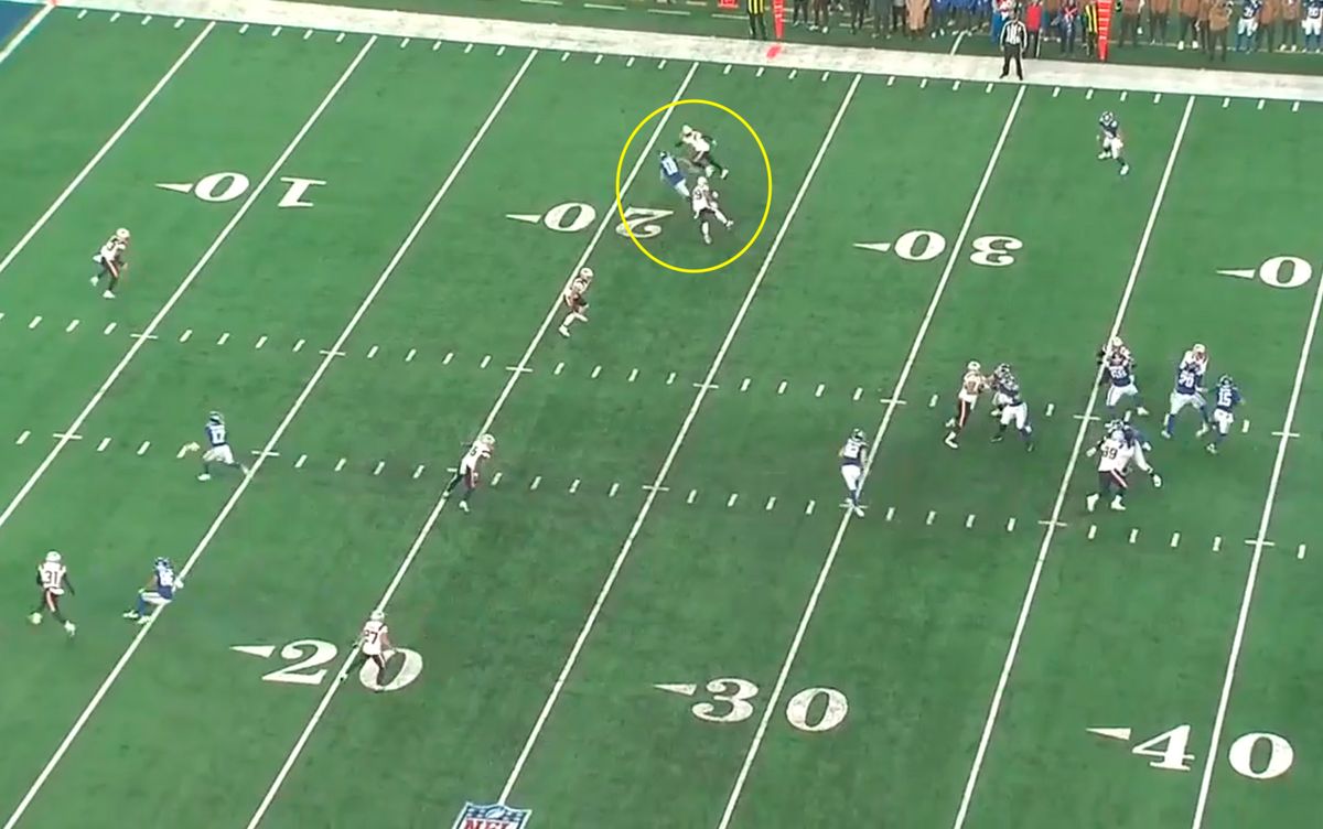 I'm not saying the game is on Jackson — obviously the offense needed to do more — but he was burned repeatedly in this game for 29 yards, 22 yards, 41 yards and had a missed tackle on third down.