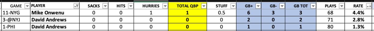 The pressure rate doesn't look that bad, but when you factor in that the Patriots ran at least 13 quick games, the true pressure rate was 50 percent. ... Trent Brown looked terrific, outside a missed cut block, once he entered the game. Credit to him playing through a lot of physical issues. ... Mike Onwenu and Sidy Sow combined for 10 plus run blocks. Sow's showed much better at guard. Even though it's still not perfect, you could make a convincing argument that he's already better than Cole Strange.