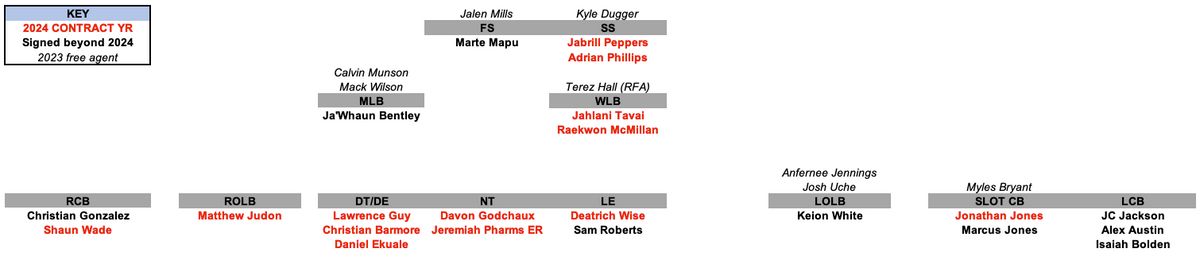 - Defensively, right now, the Patriots only have Ja'Whaun Bentley, Keion White and Sam Roberts signed beyond 2024 in the front seven, and Marte Mapu (maybe) at safety. Woof.