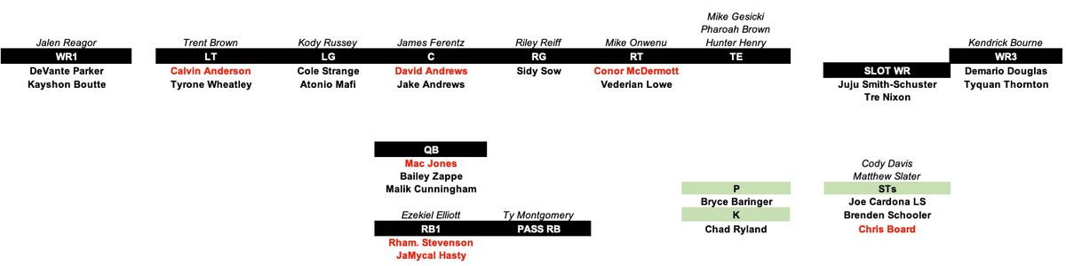 - For 2024 offensively, the Patriots at the very minimum need immediate starters at QB, LT, RT, TE (two). That's a lot at very important positions, to say nothing on the need to upgrade at WR.
