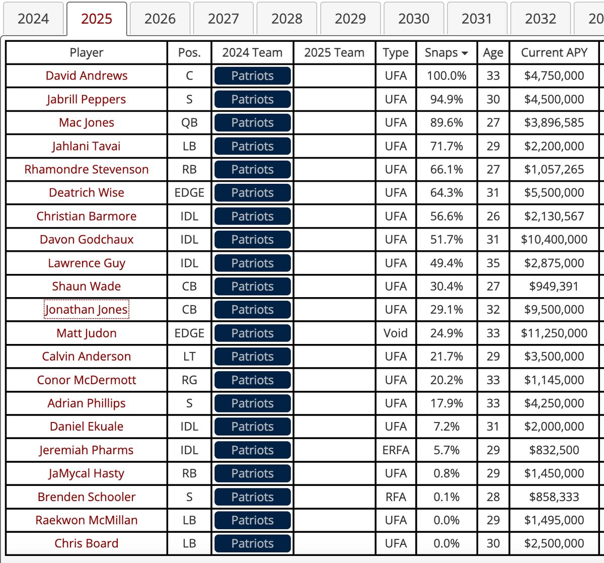 ** ED Matthew Judon (2025 void): He's only due to make $6.5 million in cash next year, similar to Stephon Gilmore when he was traded away. Patriots will have to make another decision on his contract.