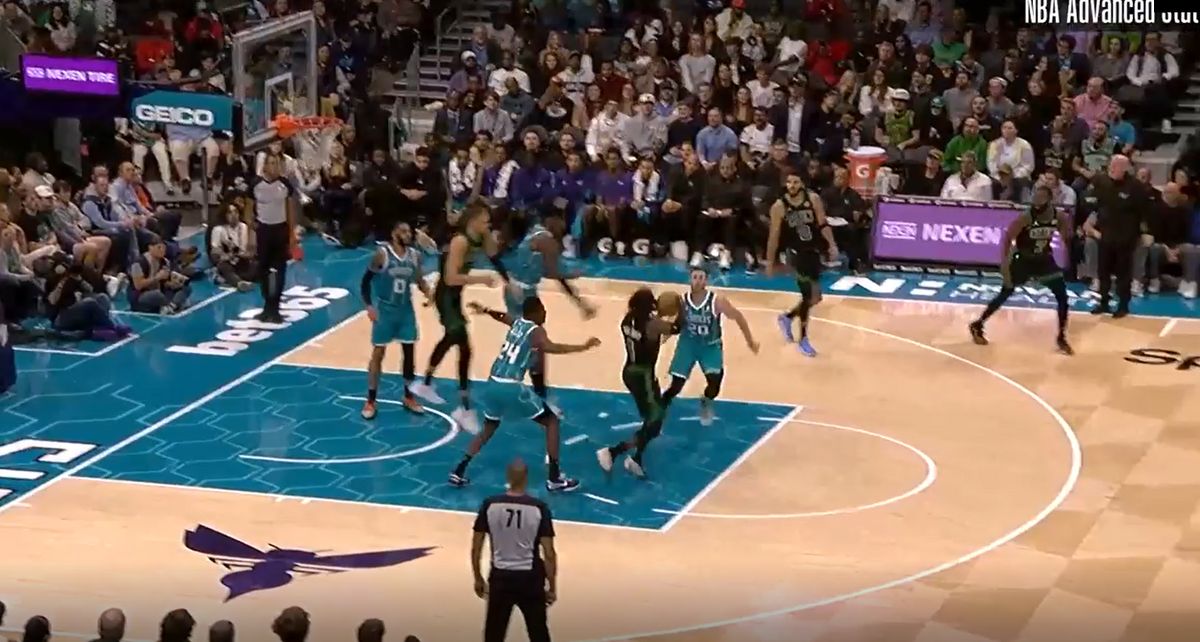 Let’s go back to that Banton corner crash. Look at where he is and where his momentum is going in relation to the Sixers.