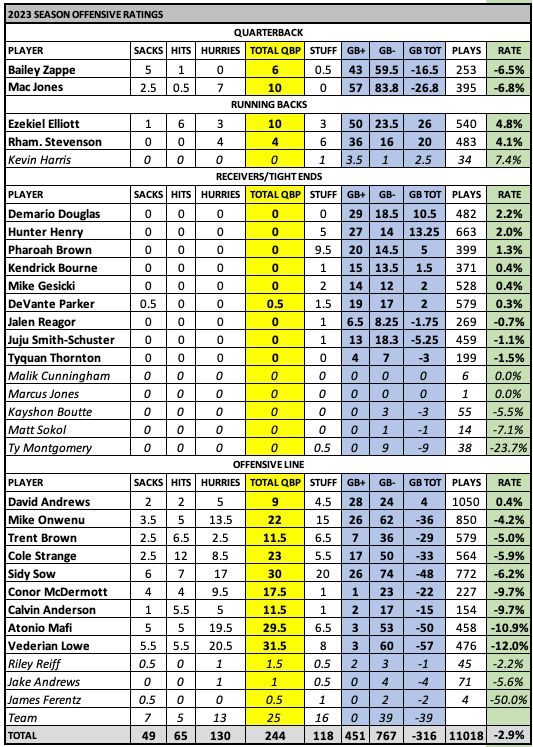 NOTE: This is normally done a month ago but, as we know, this has been an unprecedented offseason with Bill Belichick's firing, Jerod Mayo's hiring and the filling out of a new coaching staff. In other words, it's been busy. And, to be honest, I didn't want to look back to last season all that much. But it is important to make sure you properly assess the players before you look to improve for next season.