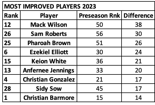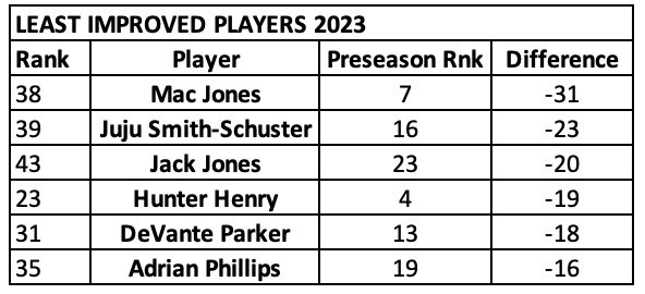 • My preseason ranking was where the player was at that time based on practices/preseason games, not a projection for where they would be at the end of the season.
