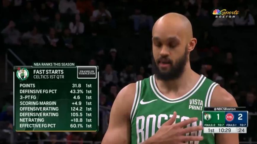 The Celtics are the NBA’s ninth-fastest team in the first quarter, playing at a pace of 102.03. That number represents how many possessions they’d get in an NBA game played at that pace. In the fourth quarter, that number drops to 93.92.