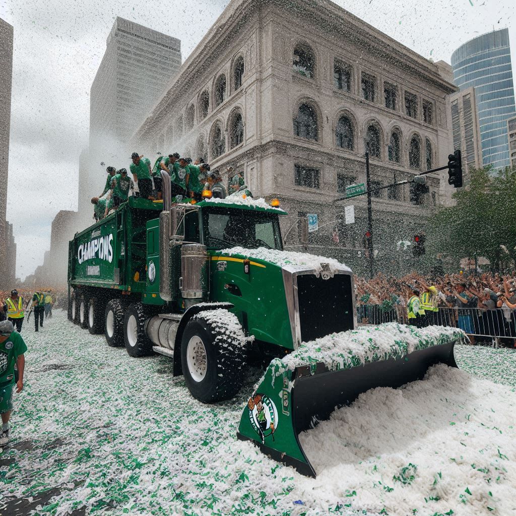 Here’s today’s Bing AI-Generated image: Let’s put the snow plows to good use and clean up AS we’re celebrating next time.