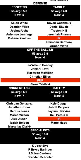 1. SEVEN WIDE RECEIVERS? YES, SEVEN: Don't think this is because the Pats have so many good ones they couldn't dare part with one or two and risk losing them. The decision is as much about the overall depth of the team and keeping the 53 best players, regardless of position, as it is about being loathe to expose someone to waivers. Why do that when you aren't good enough elsewhere? Plus, Tyquan Thornton hasn't proven durable during his first two years in the league. Ditto for Pop Douglas in year one. Kendrick Bourne is on PUP, and who knows what he looks like when he comes back? Could Wolf flip a piece for depth in another area of need, which is to say, almost all of them? Everything is in play, and it should be. This is a 4-13 team with a flawed roster.