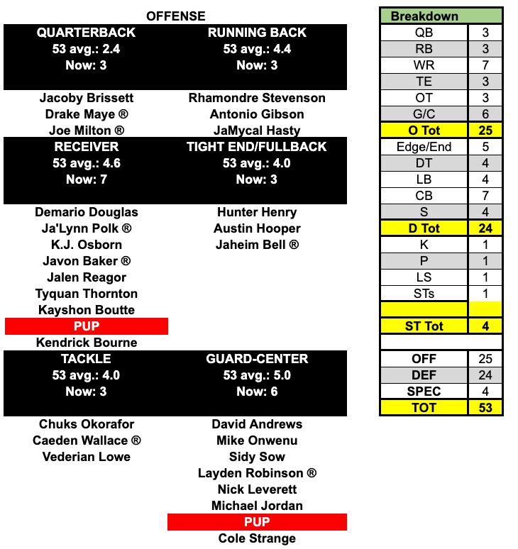 It's nice to have a cut-down day come and go and not wait until hours after the 4 p.m. deadline to get the Patriot's official list. That said, this 53-man roster crafted by GM Eliot Wolf is thin. It's so thin it's already taken offense to what I just wrote and stormed out of the room (I won't quit my day job). Here are four takeaways from what happened and a few names to watch as possible waiver claims.