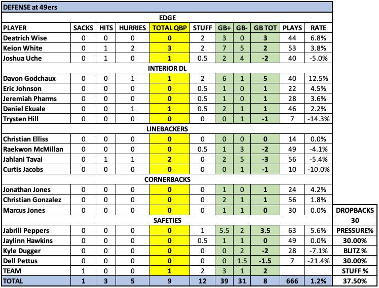 S Dell Pettus: Only played 7 snaps but had a huge miscue on the Kittle TD.