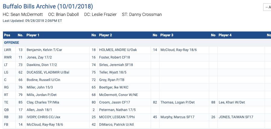 Josh Allen was 2nd in the league after his first four starts at 6.7%. Of course, Allen started Week 2 and didn't have the "development" Maye did. Allen also played with largely crap, but he went 6-10 with Brian Daboll. LT Dion Dawkins and RB LeSean McCoy were the headliners. Zay Jones was his leading receiver with 58 catches.