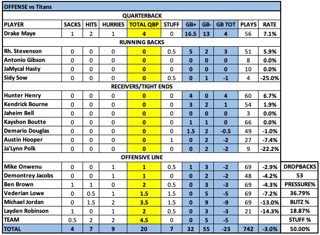 This was all Rhamondre Stevenson. He had two tremendous touchdowns, and two extraordinary blitz pickups that were extremely physical. He had two questionable run decisions.