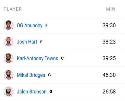 - The Knicks won by 25 last night. Here’s how many minutes their starters played.