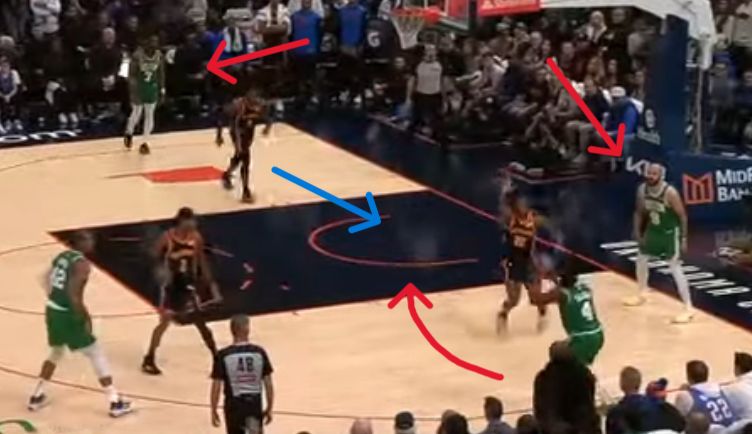 5. Weird play, Brown had no choice. He could have tried firing a pass to Porzingis but with two and change left on the shot clock, it's hard to make that play. If there were five seconds on the clock, then it would have been a bad 3.