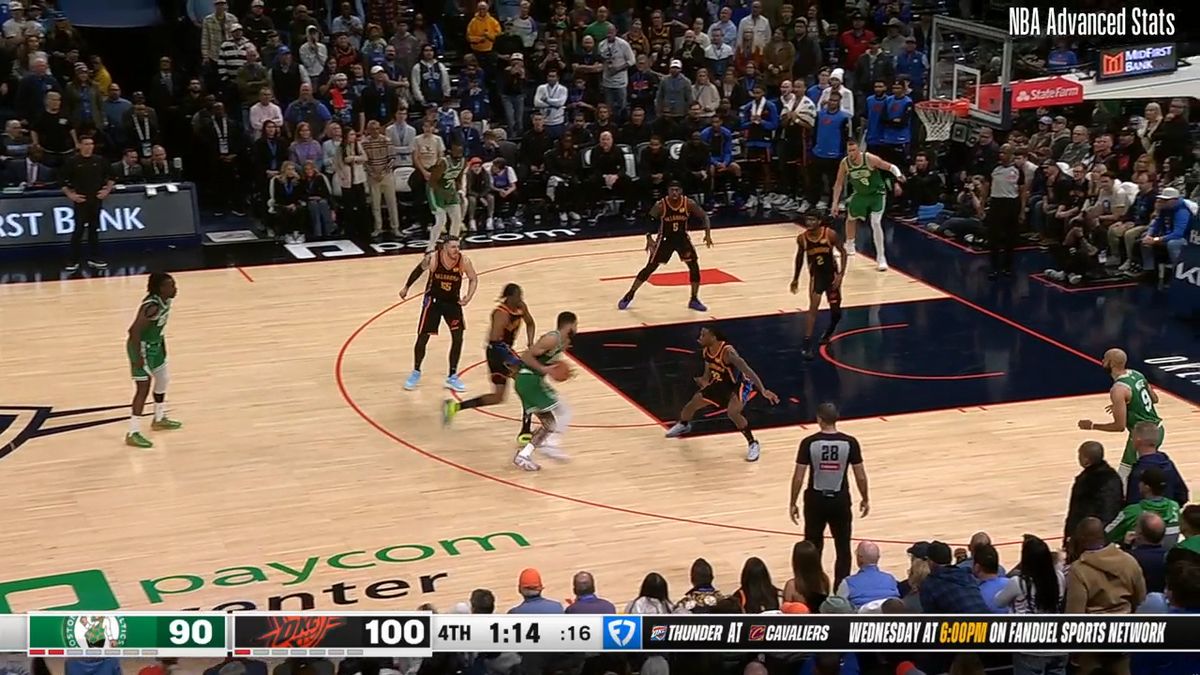 10. Tatum deep off the pick-and-roll. He made it. The C's needed that one.