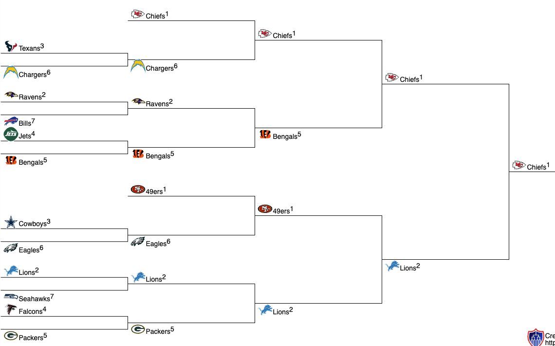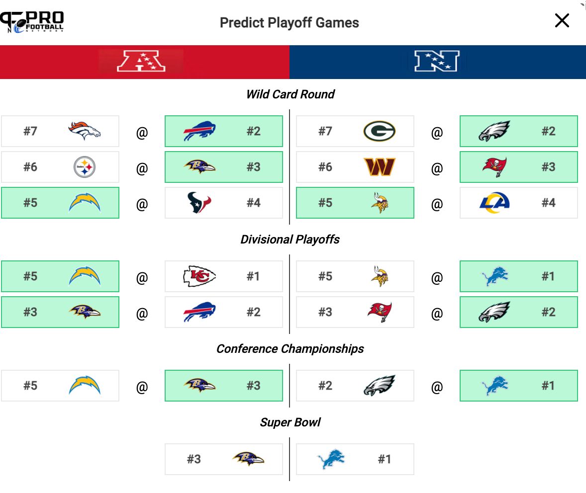 - NFL playoff predictions for this weekend (made at 3 p.m. Saturday, I swear):