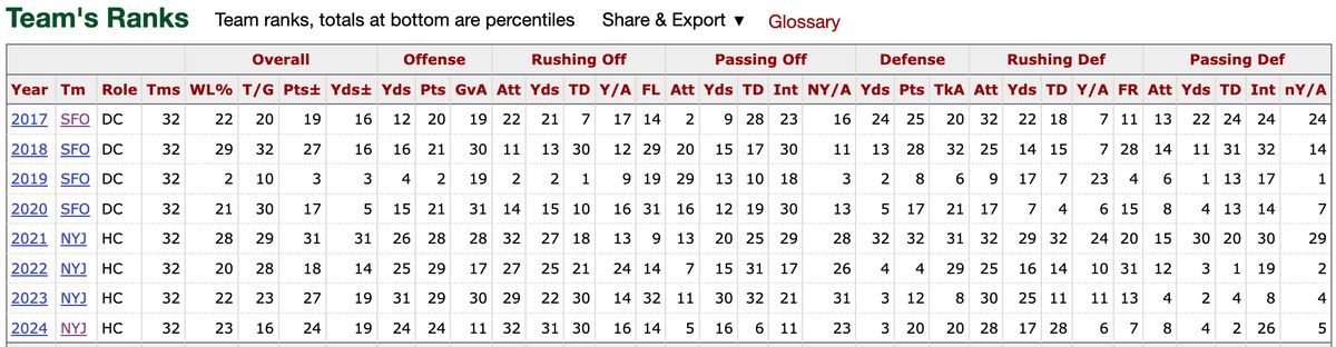 Pro: Has a lot of experience and time in the Kyle Shanahan scheme and now has been with McVay for two seasons. Two years experience as OC with Jets from 2021-22. Offense was 31st and 14th in points with Jets. West Coast scheme.