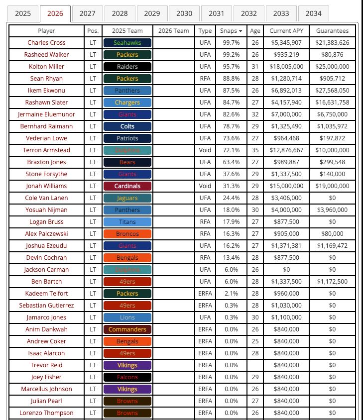 2026 Left Tackle Free Agents