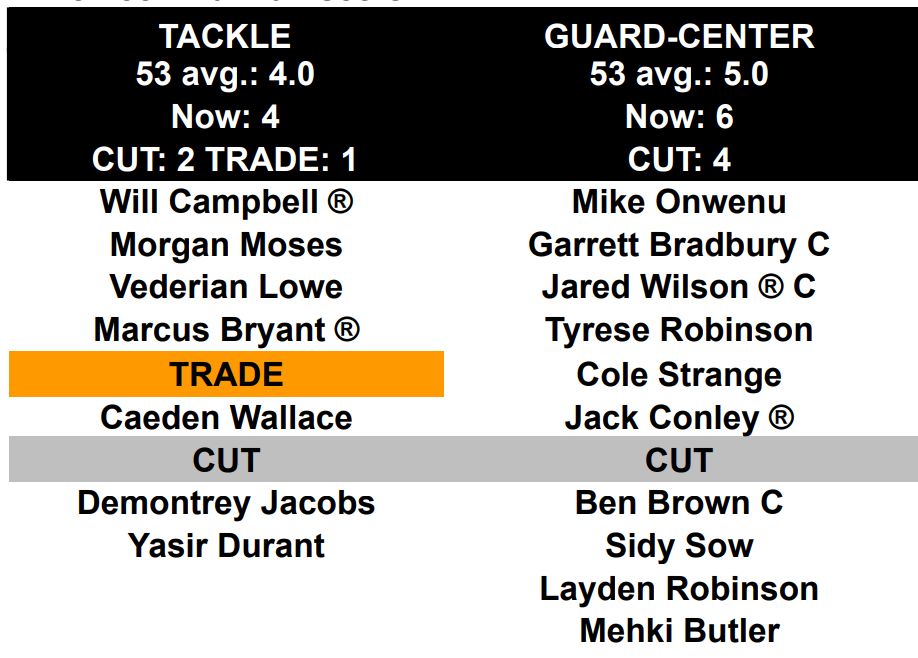 At tackle, Campbell and Moses are locks. After that, it's completely up in the air.
