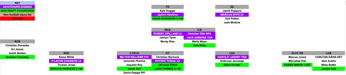 This is a good day to reset the depth chart, and give you my picks for ascending/descending players to this point. I'll have an updated 53-man roster projection this week.