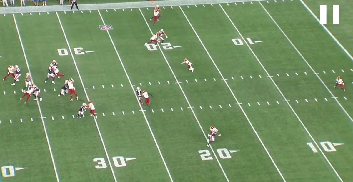Rhamondre Stevenson showed his nifty feet on his 13-yard run that was thanks to a great Garrett Bradbury block. ... TreVeyon Henderson's burst and physicality were real. But I would caution wanting too much too soon for him. The thunder and lightning thing worked pretty well for the Lions last year with David Montgomery and Jahmyr Gibbs. Don't worry, he'll get plenty of touches in a variety of ways. ... Too bad Lan Larison got hurt and is done for the year. He's another guy where the burst was real on film.