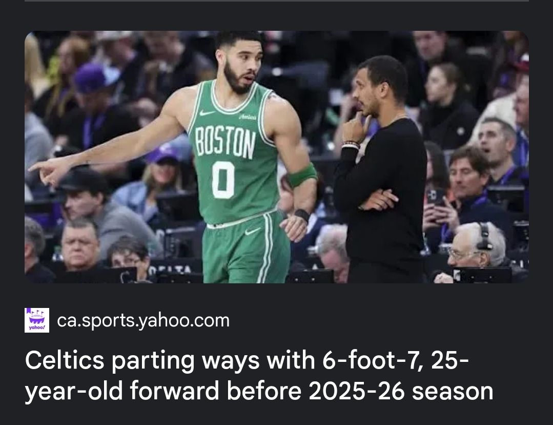 “Celtics parting ways with 6-foot-7, 25-year-old forward before 2025-26 season” and a picture of Tatum, as if to say the Celtics have decided to cut ties with him. The shock of the insinuation is meant to distract from him not actually 6’7” or 25.