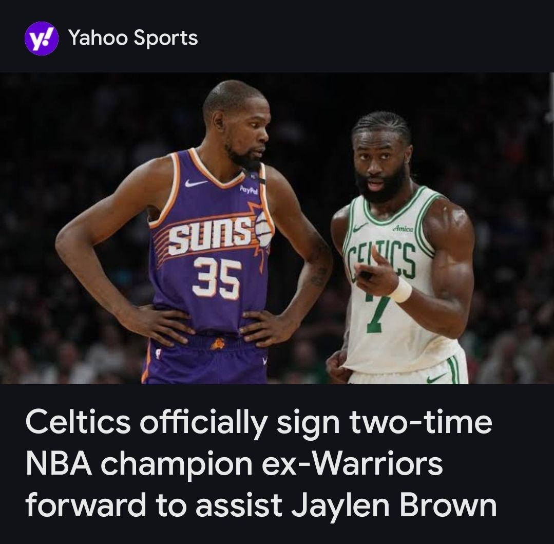 “Celtics officially sign two-time NBA Champion ex-Warriors forward to assist Jaylen Brown” with a picture of Brown and Kevin Durant
