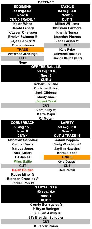 Edge/tackle: No changes here because I think they can get Peko to the practice squad, but I do wonder if they keep six at DT. That is a lot, however.