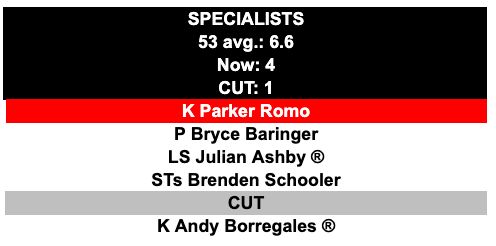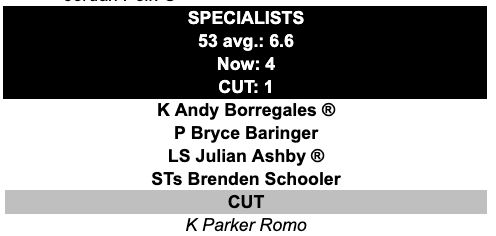 TE Jack Westover makes the team: He was probably the player I moved the most on and off the roster. Good solid player, showed well as a blocker, as a fullback and on special teams, but I didn't think he would be claimed. I wonder if he's the player displaced if the Patriots sign a true fullback, especially now that former Patriots and Raiders (Josh McDaniels) FB Jakob Johnson is on the street and free to sign anywhere right now as a vested veteran. He's literally plug-and-play in this scheme.