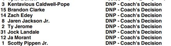 I’m not going to make any determinations after one preseason game against a Grizzlies team missing all of their good players. Look at this list of guys who didn’t play: