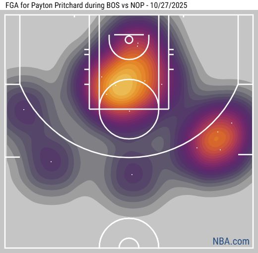 - Payton Pritchard: He was pesky on offense, finding his way into the middle of the paint and scoring at the rim. Look at his heat map.