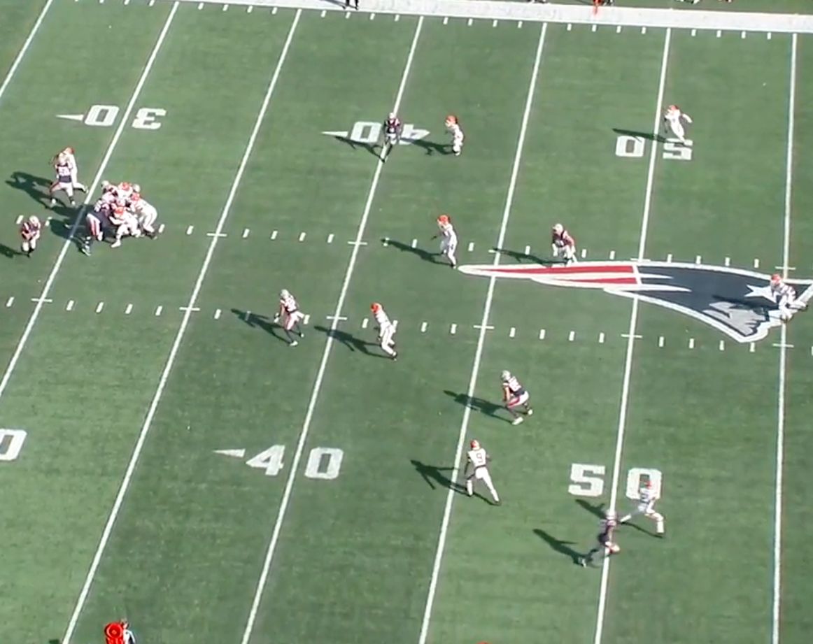 A rare time when Maye, with a good pocket, misses on a deep pass. And Henry was a good option in the middle against man coverage.