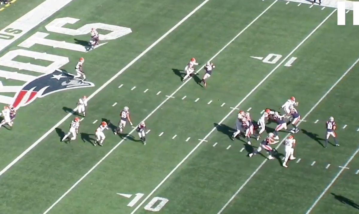 Would have been pretty good without the TreVeyon Henderson fumble and half run stuff when he tried to bounce an inside run and failed. But those were my only issues with this group, even Henderson had a solid pass pro rep. Henderson showed the burst thanks to McDaniels scheming around the Browns' wide-9 alignment where most teams take the cheese to run inside, where the linebackers slam the line. ... Hopefully the start of good things for Henderson. ... Stevenson was also very solid and really liked how calm he was on the throwback. He threw with great timing and that play could have been a disaster. ... Even Terrell Jennings (11-yard run) and Jack Westover (plus run block) got into the flow.