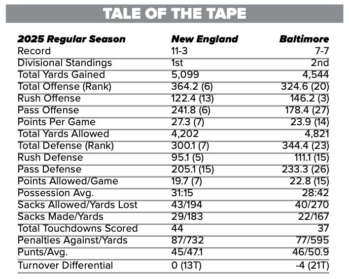 Online: Live Box | Patriots media notes | Ravens media notes | Flipcard