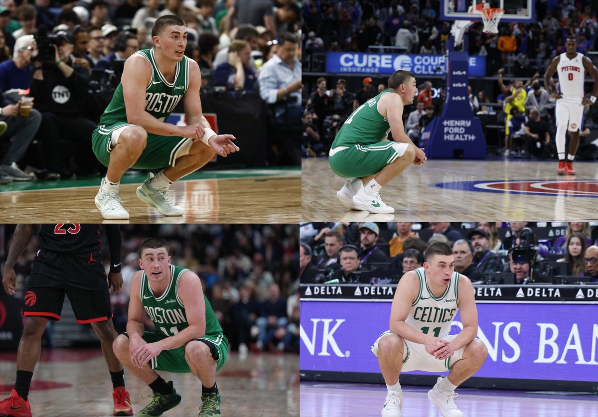 - For some reason, my search for Celtics postgame photos consistently captures Pritchard crouching.
