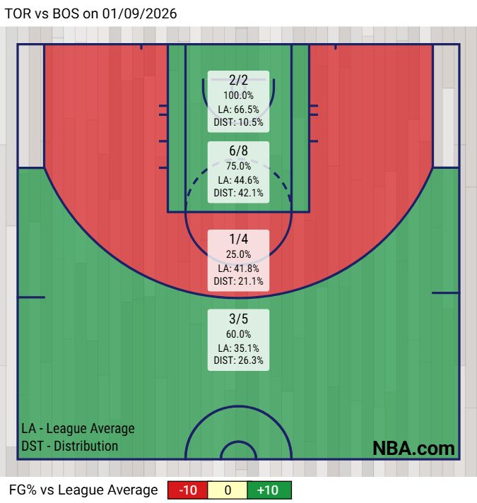 - 2-point barrage: The Celtics shot well from 3, but they didn’t take a ton. The 28 is the lowest this season by far (previous 33 vs. Orlando twice) and one of the lowest outputs in the Joe Mazzulla era.