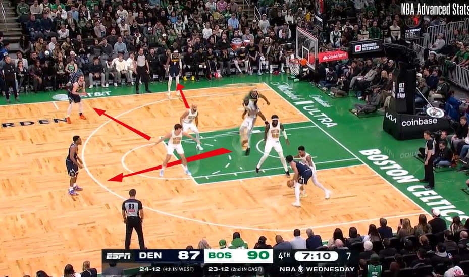 And at that point, even if Murray made the skip pass, the Celtics could have easily rotated out to the shooters.
