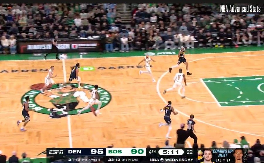 Then later, as the Nuggets were making their run, Brown found himself back on this fast break.
