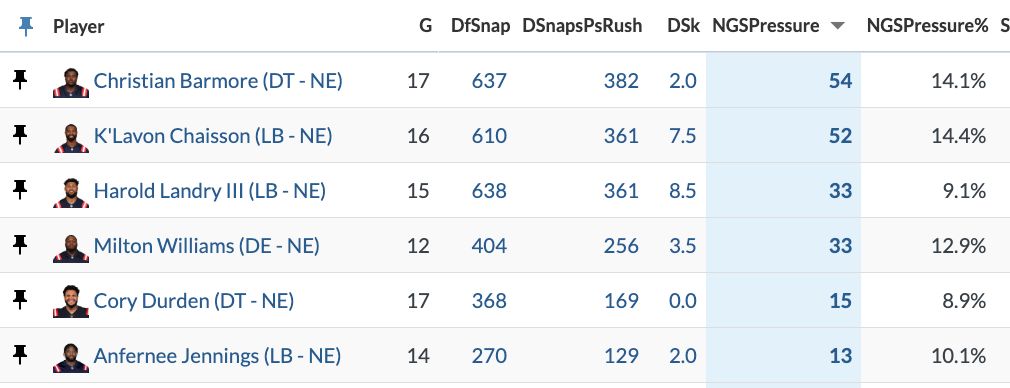 The stunts and games from the Seahawks: We went over that already. They have five players with at least 40 pressures this season, and the Seahawks are one of the lowest blitz rate teams in the league. These guys work well together, and they pressure the quarterback consistently.