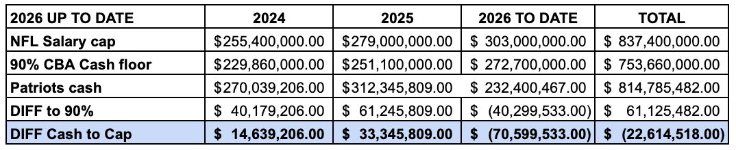 So now the question is, coming off a Super Bowl appearance, how much should we anticipate the Patriots spending in 2026, and how will they allocate those resources — are they going to "go for it," or are they going to stay the course with the rebuild?