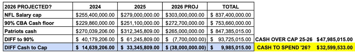 I don't know this for a fact, but it sure seems like Kraft looks in three-year increments because that's what the CBA lays out in terms of the 90% cap/cash spending floor. The 2026 league year is the final year of this three-year period.