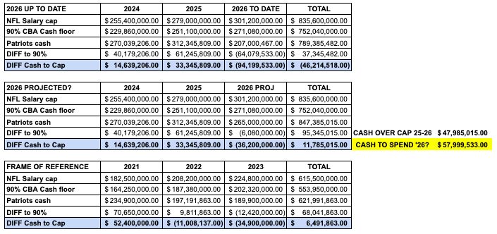 The biggest benefit of parting with Diggs now is that the Patriots have now freed up another $21.7 million in cash to spend this offseason. Depending on where the Krafts draw the line on the cash budget, New England could now have more than $60 million more in cash to spend to help the team. It's $60 million if the Krafts allow Mike Vrabel to be over the three-year cash budget by $11 million. If the Krafts approve more, the Patriots would be able to go even further.