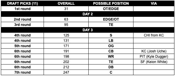 • Expect the Patriots to attempt to leave the draft with OT, TE, an interior player that can snap the ball, possibly a third QB and young RB to add to the room. Edge, LB, S and possibly a cornerback.
