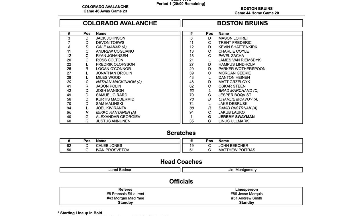 The second period was when the Avalanche got some momentum with a goal from Nathan MacKinnon to cut the Boston lead to 3-2. Colorado outshot the Bruins 16-8 in the second period.
